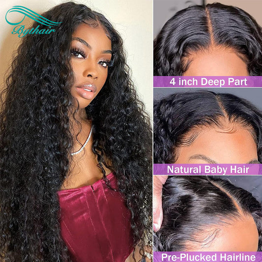 Long Curly Lace Front Human Hair Wig Glueless 13x4 13x6 Transparent Lace Frontal Wigs