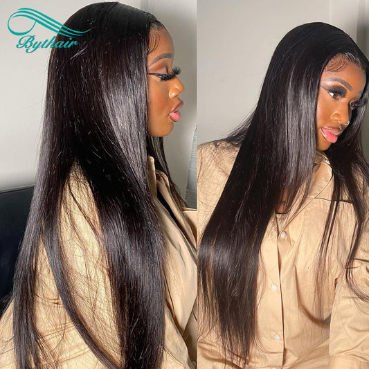 Silky Straight Lace Front Wig Human Hair Glueless 13x4 13x6 HD Transparent Lace Frontal Wigs