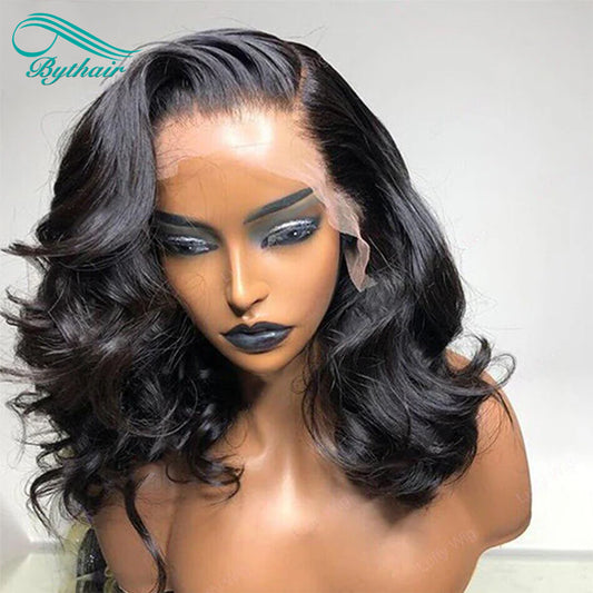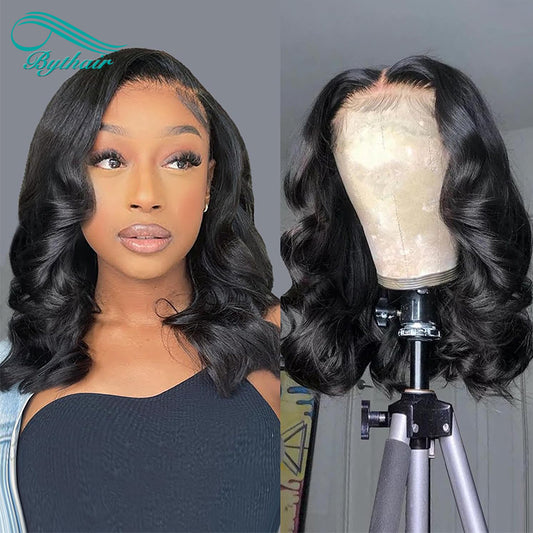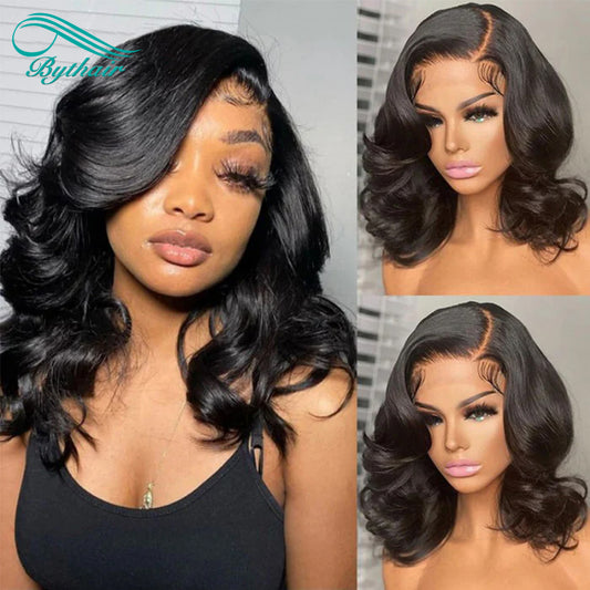 Short Body Wave Bob Wig Wavy 13x4 13x6 HD Transparent Lace Front Human Hair Wigs 150% 180%