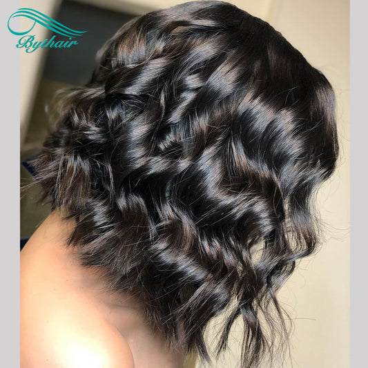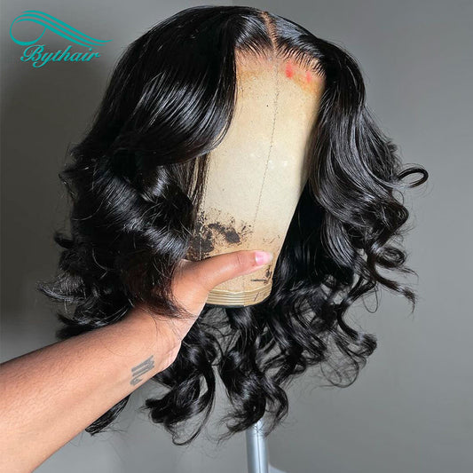 bythairshop Short Loose Wave 5x5 Lace Closure Wig Human Hair Glueless Wig