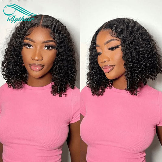 Kinky Curly Short Bob HD Transparent 13x4 13x6 Lace Front Human Hair Wigs Pre Plucked For Women