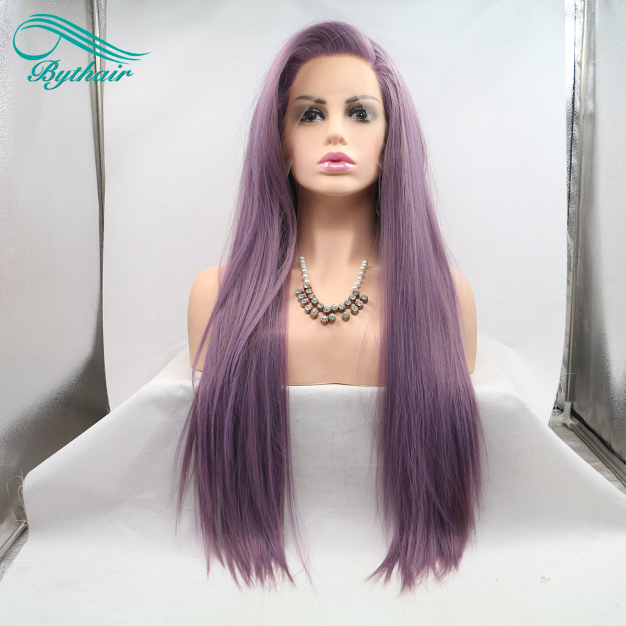 Long Purple Color Synthetic Lace Front Wig Cosplay Wigs For Women Heat Resistant Fiber Lace Wigs