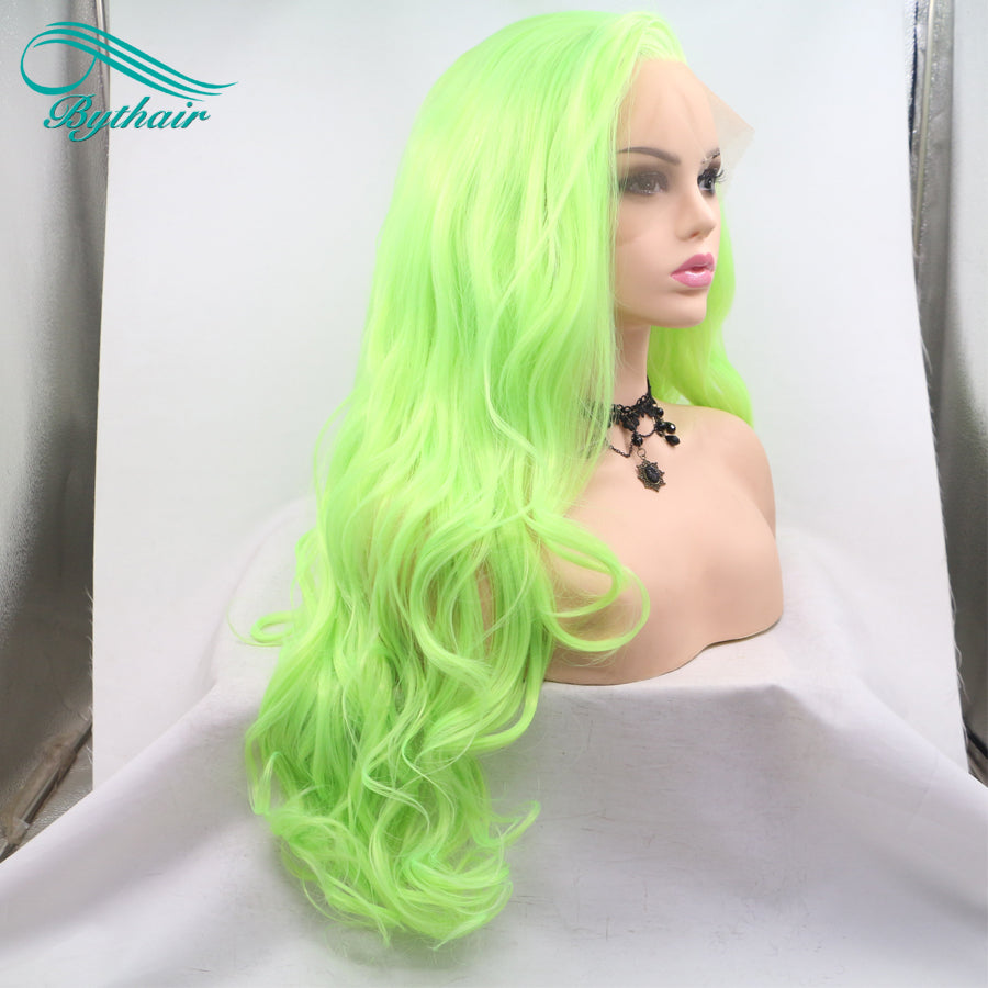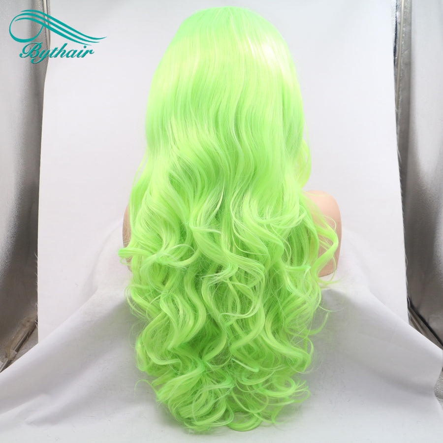 24inch Long Green Color Synthetic Lace Front Wig Cosplay Wigs For Women Heat Resistant Fiber Lace Wigs