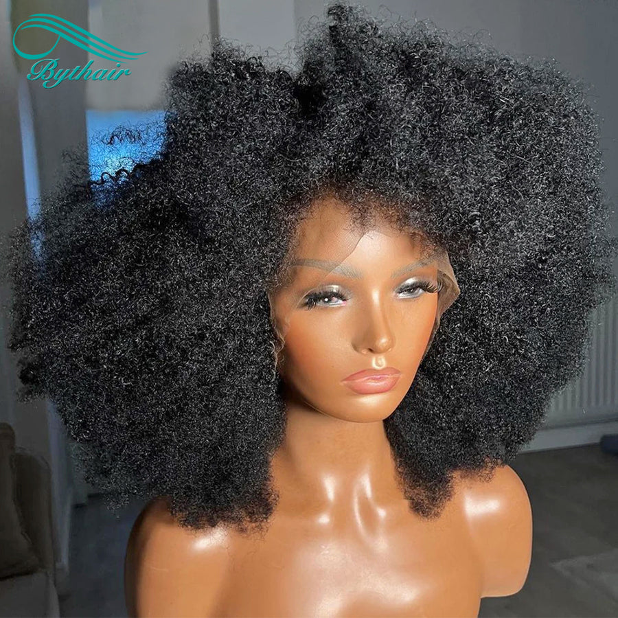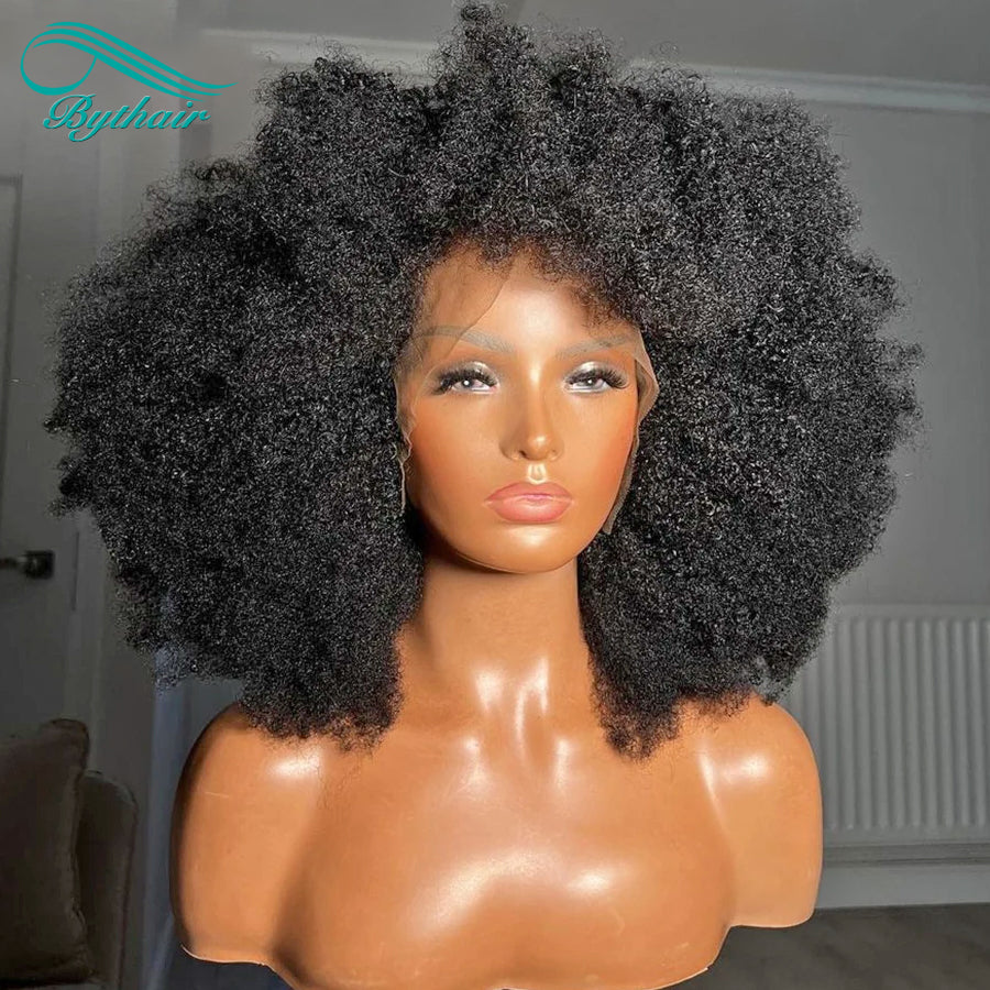 4C Curls Afro Kinky Curly Wig Glueless 13x4 13x6 Hd Transparent Lace Front Wig Human Hair