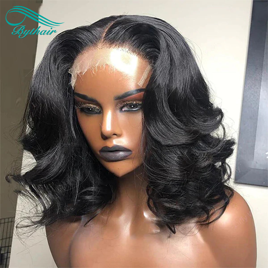 Body Wave Short Bob HD Transparent Lace Front Human Hair Wigs For Black Women Natural Black