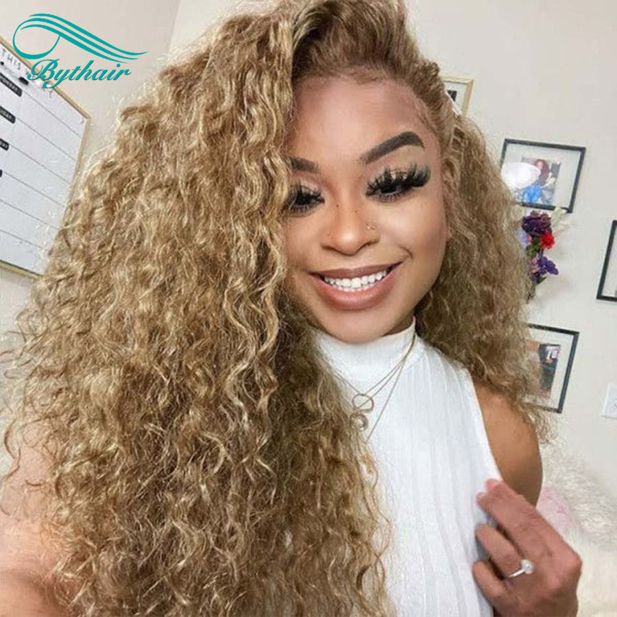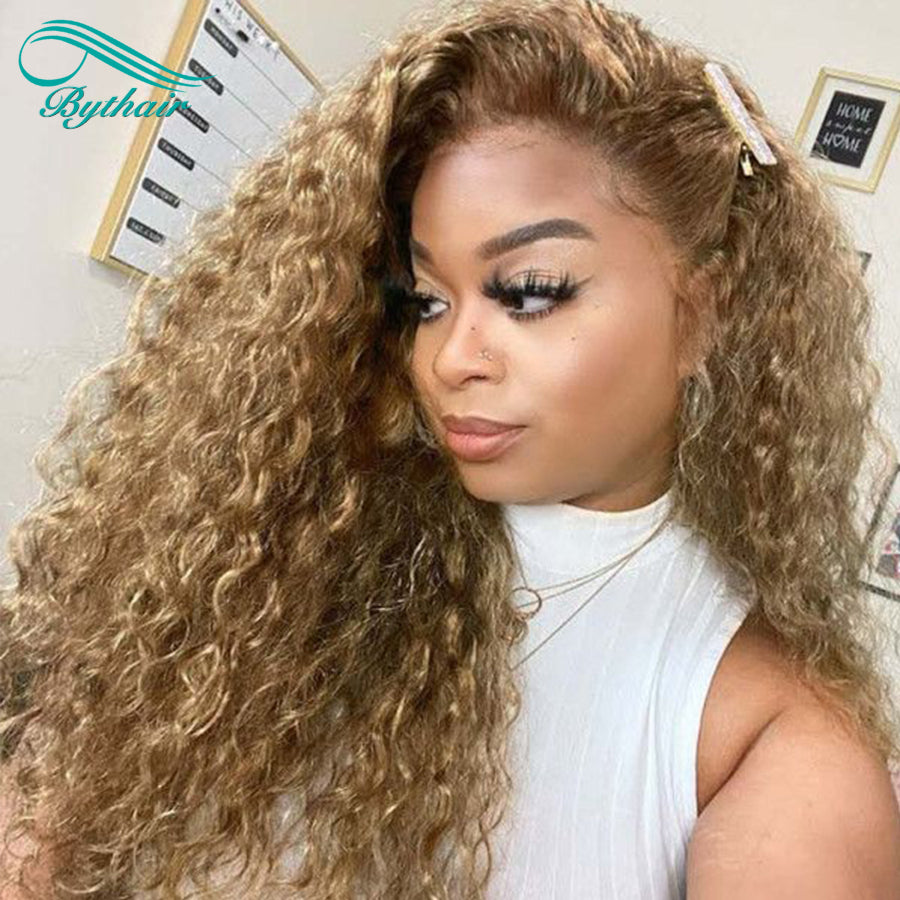 #27 Honey Blonde Curly Hd Transparent lace 13x4 13x6 Lace Front Wigs Human Hair Pre Plucked Hairline Glueless Lace Wig