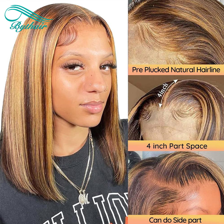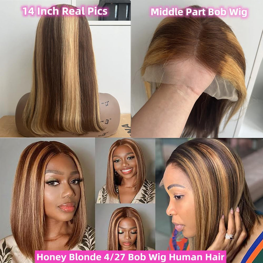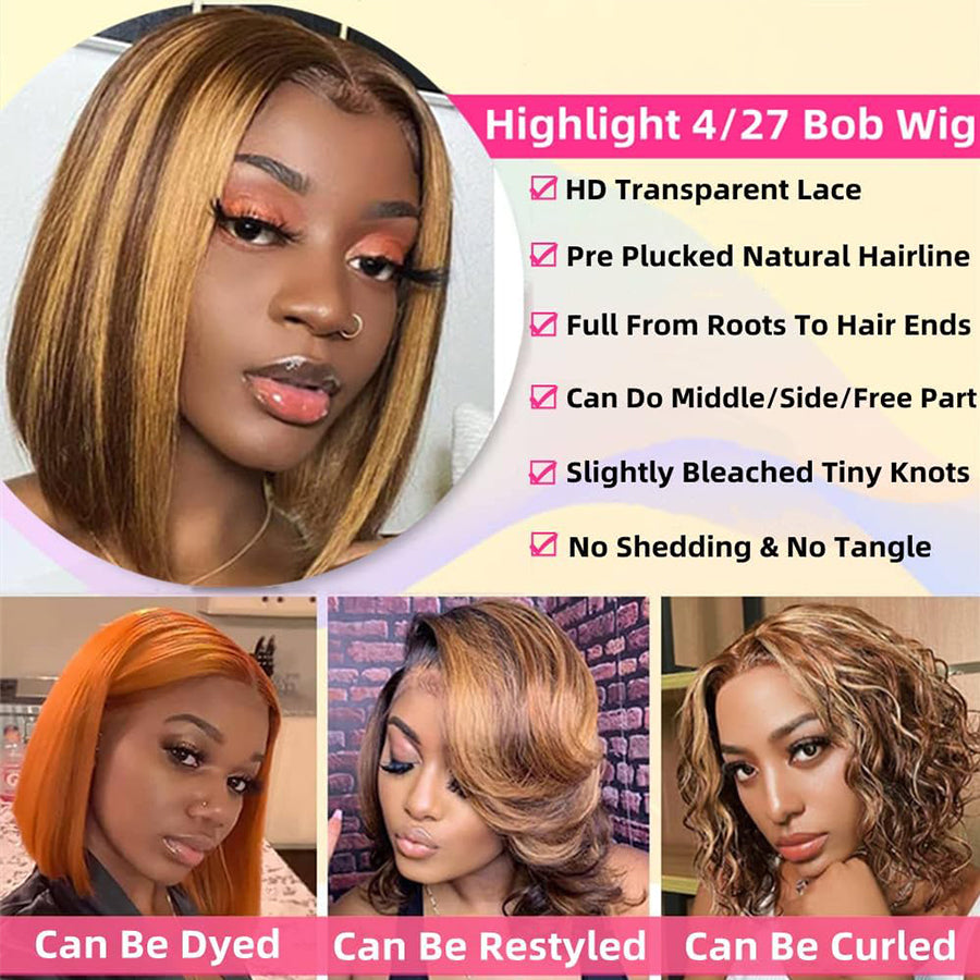 Highlight Lace Front Bob Wig Human Hair 4/27 Ombre Honey Blonde 13x4 13x6 Hd Transparent Lace Front Wigs