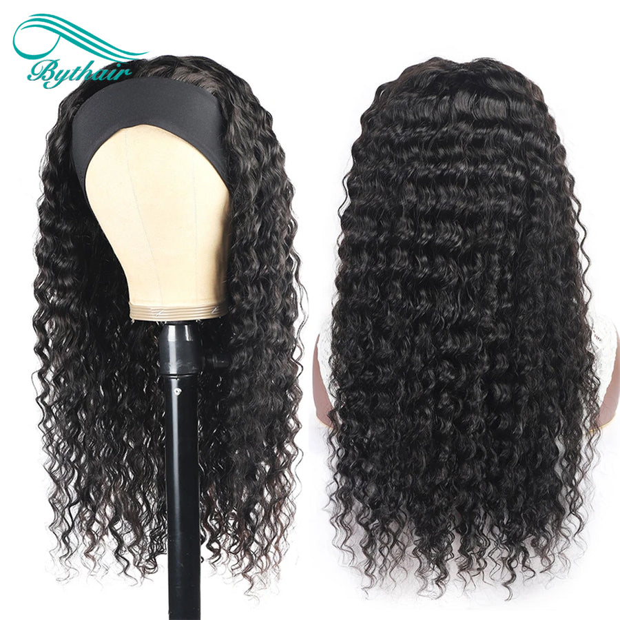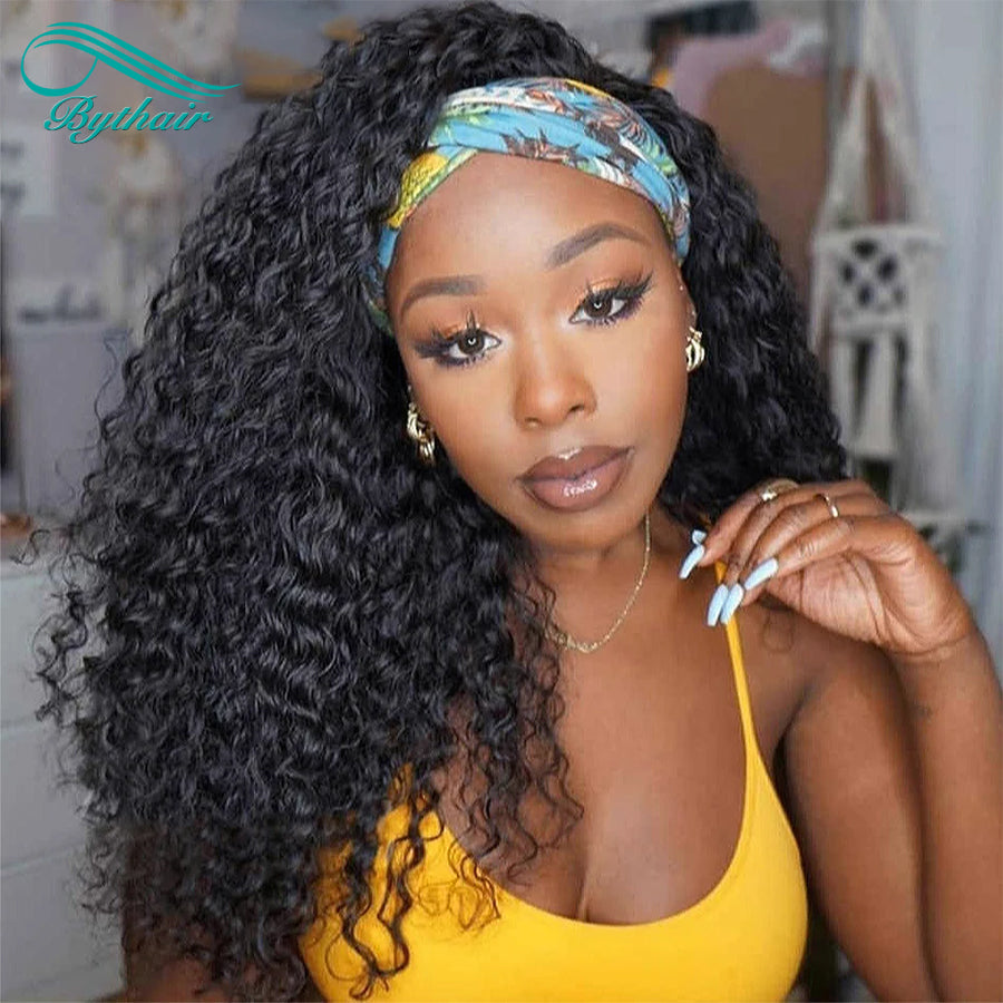 Kinky Curly Headband Wig Human Hair 180% Density Deep Wave Ready To Wear Wig bythairshop