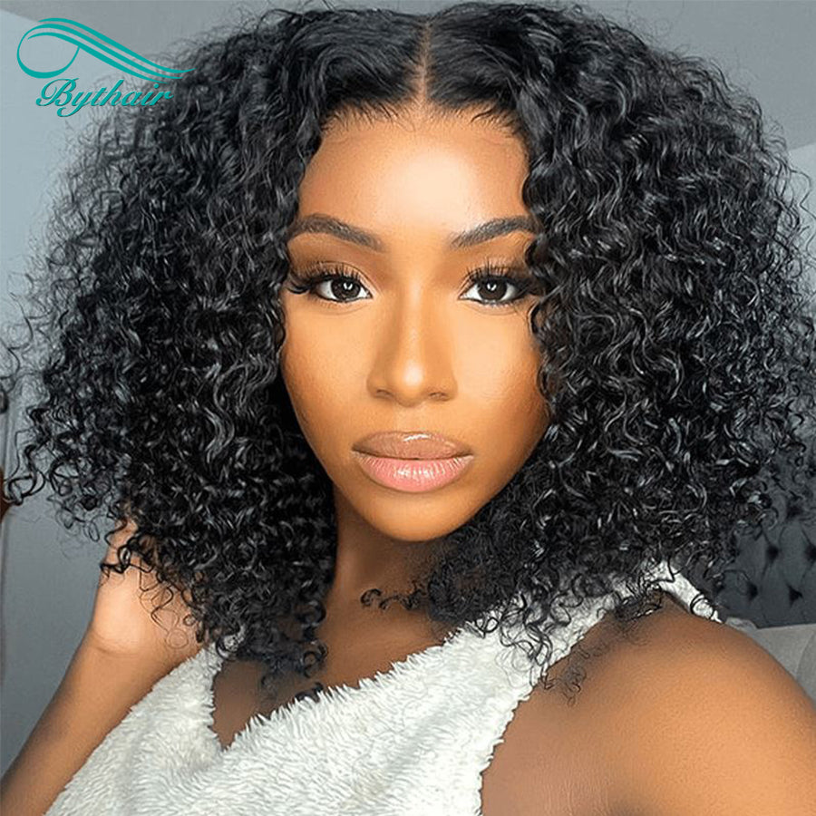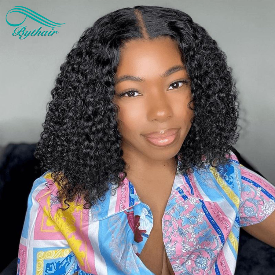 Kinky Curly Short Bob HD Transparent 13x4 13x6 Lace Front Human Hair Wigs Pre Plucked For Women
