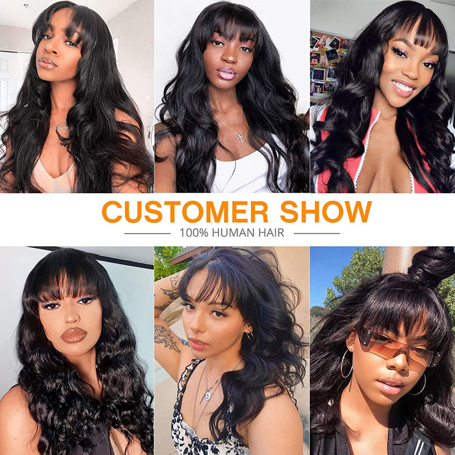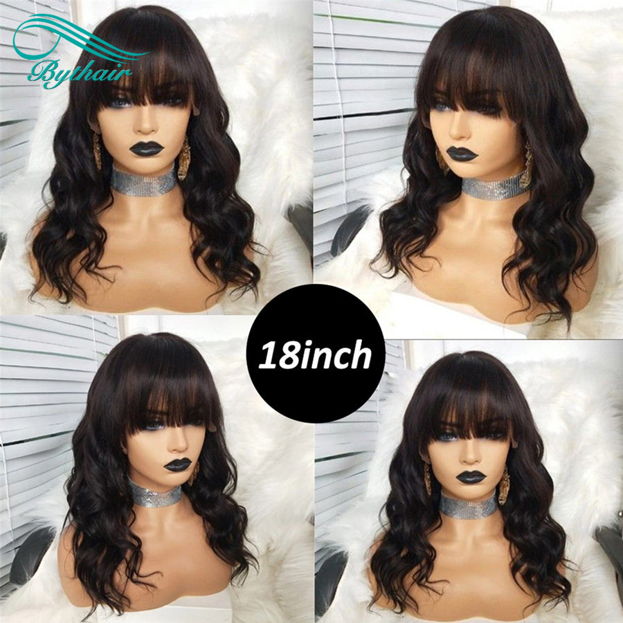 Wavy Human Hair Wigs With Bangs Glueless 13x4 13x6 Lace Front Wig With Bangs