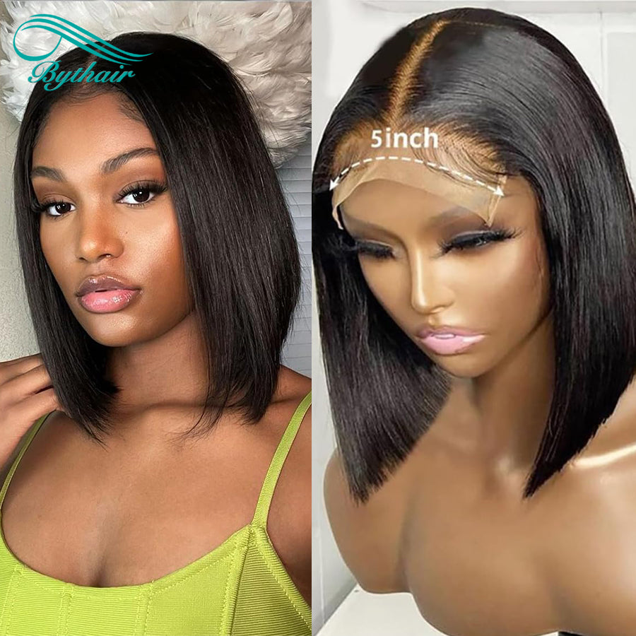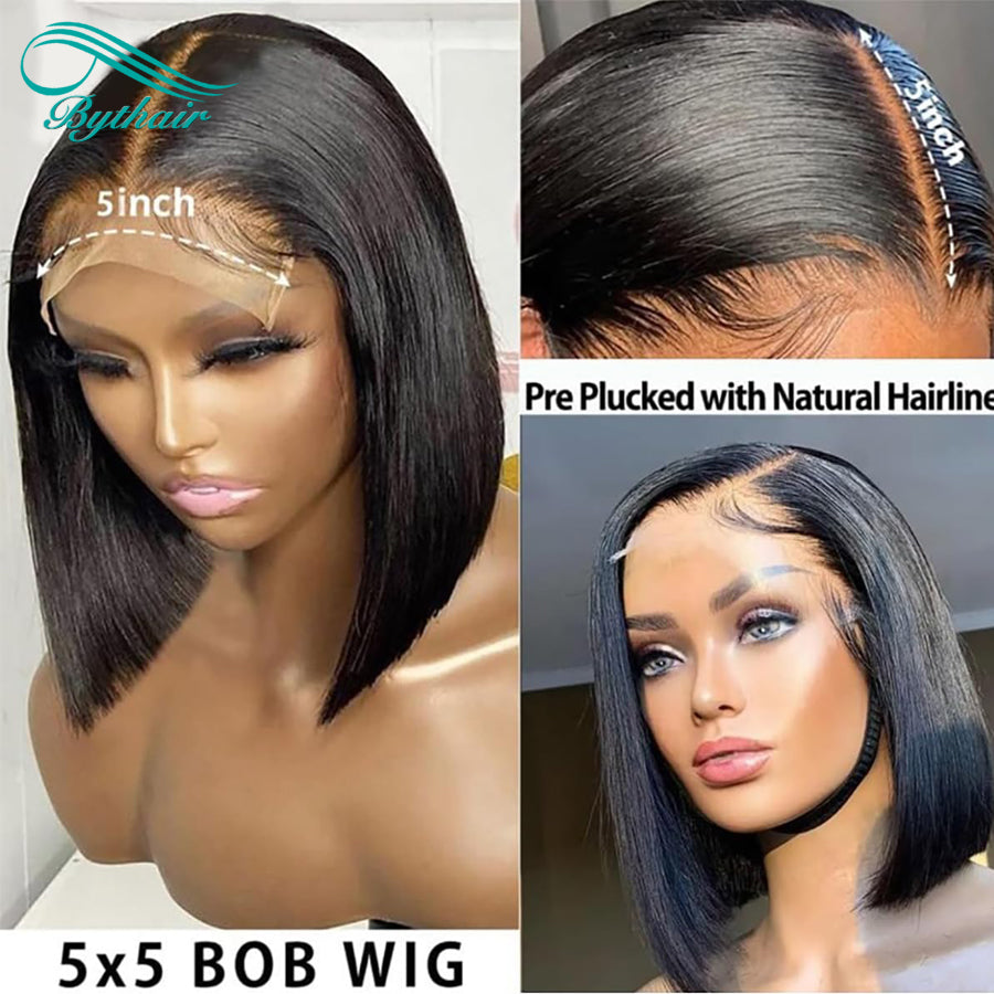 Short Bob Wig 5x5 Hd Lace Closure Wigs Human Hair Transparent Glueless Wigs Pre Plucked with Baby Hair