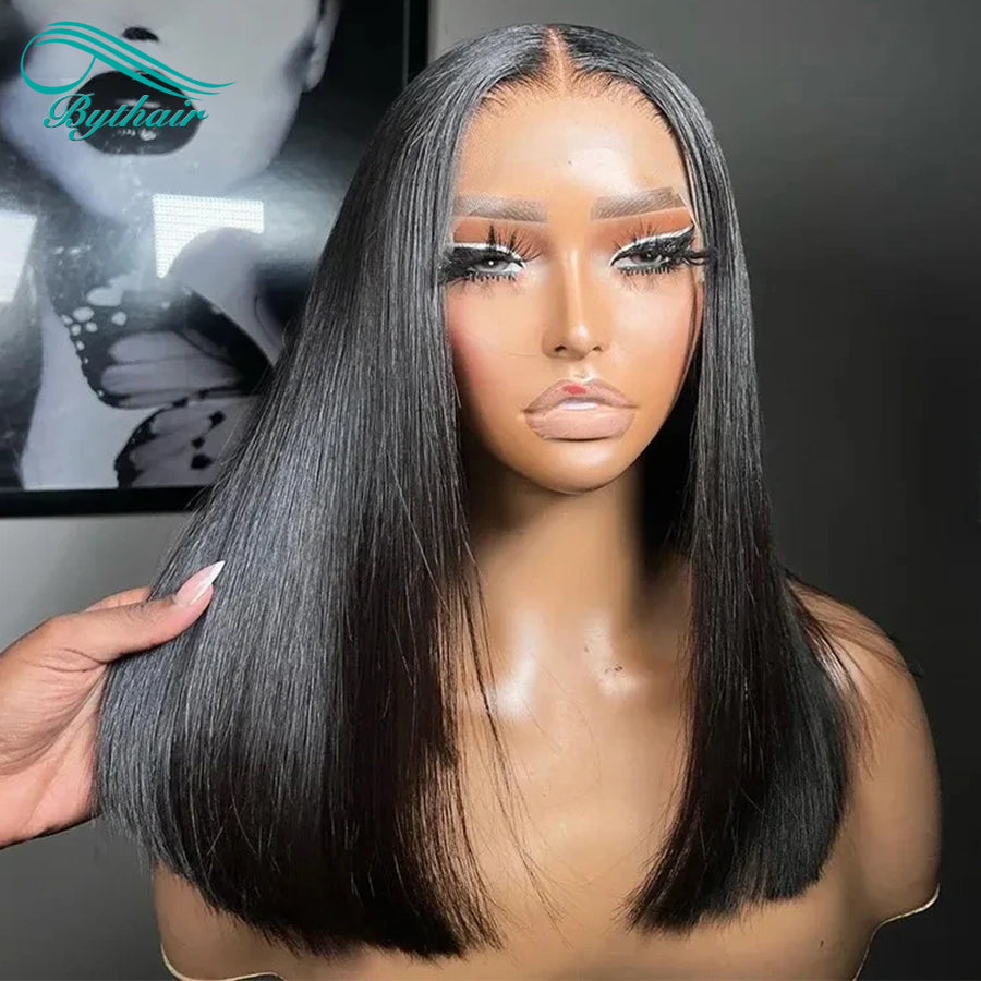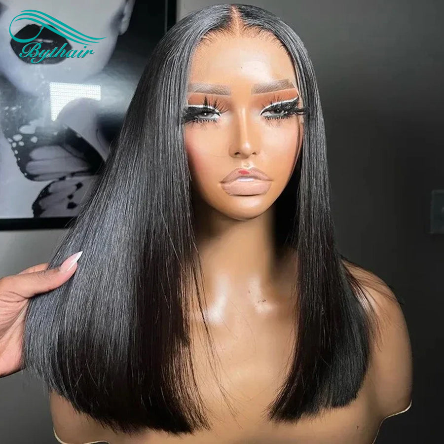 Straight Bob Wig Human Hair Hd Transparent Lace Front Wigs Human Hair Pre Plucked