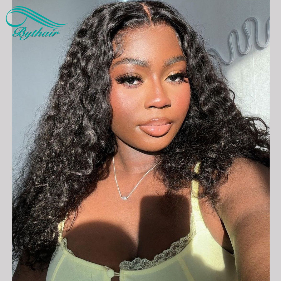 Deep Curly Hd Transparent Lace Front Wigs Human Hair Pre Plucked Glueless Lace Wigs