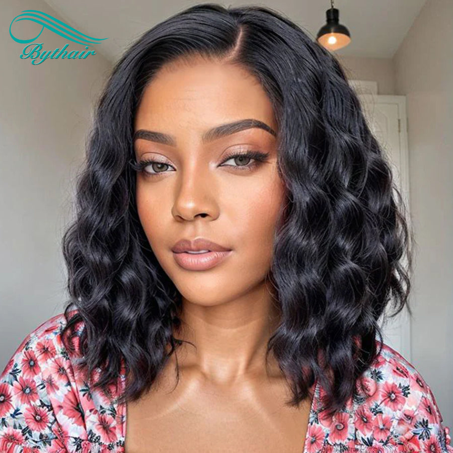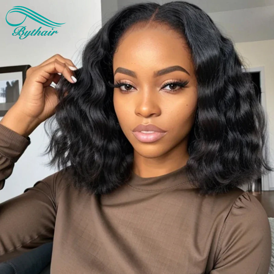 Water Wave Short Bob Hd Transparent 13x4 13x6 Lace Front Human Hair Wigs Glueless Lace Wig