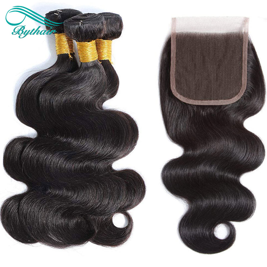 Brazilian Body Wave Hair 3 Bundles With 4x4 Lace Closure 100% Human Hair
